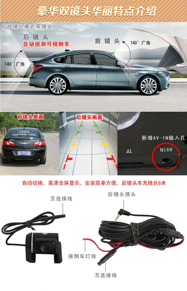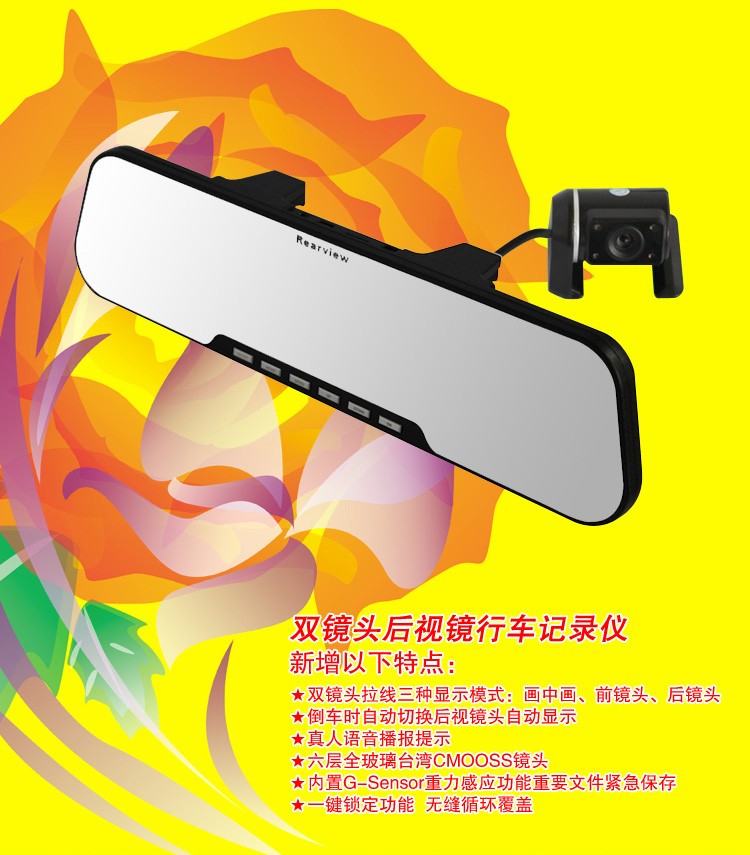 » 双镜头 后视镜行车记录仪 高清1080 广角 夜视